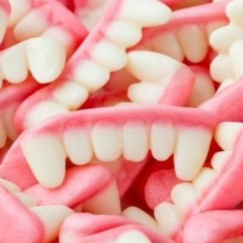 Tja, de echte snoepkenner kent ze nog als retro gebitjes. Daarom konden zij ook niet in ons assortiment ontbreken. De tanden van de Vampier. Lekker zoet, lekker weg te kauwen. Doe je de groeten aan de tandarts....